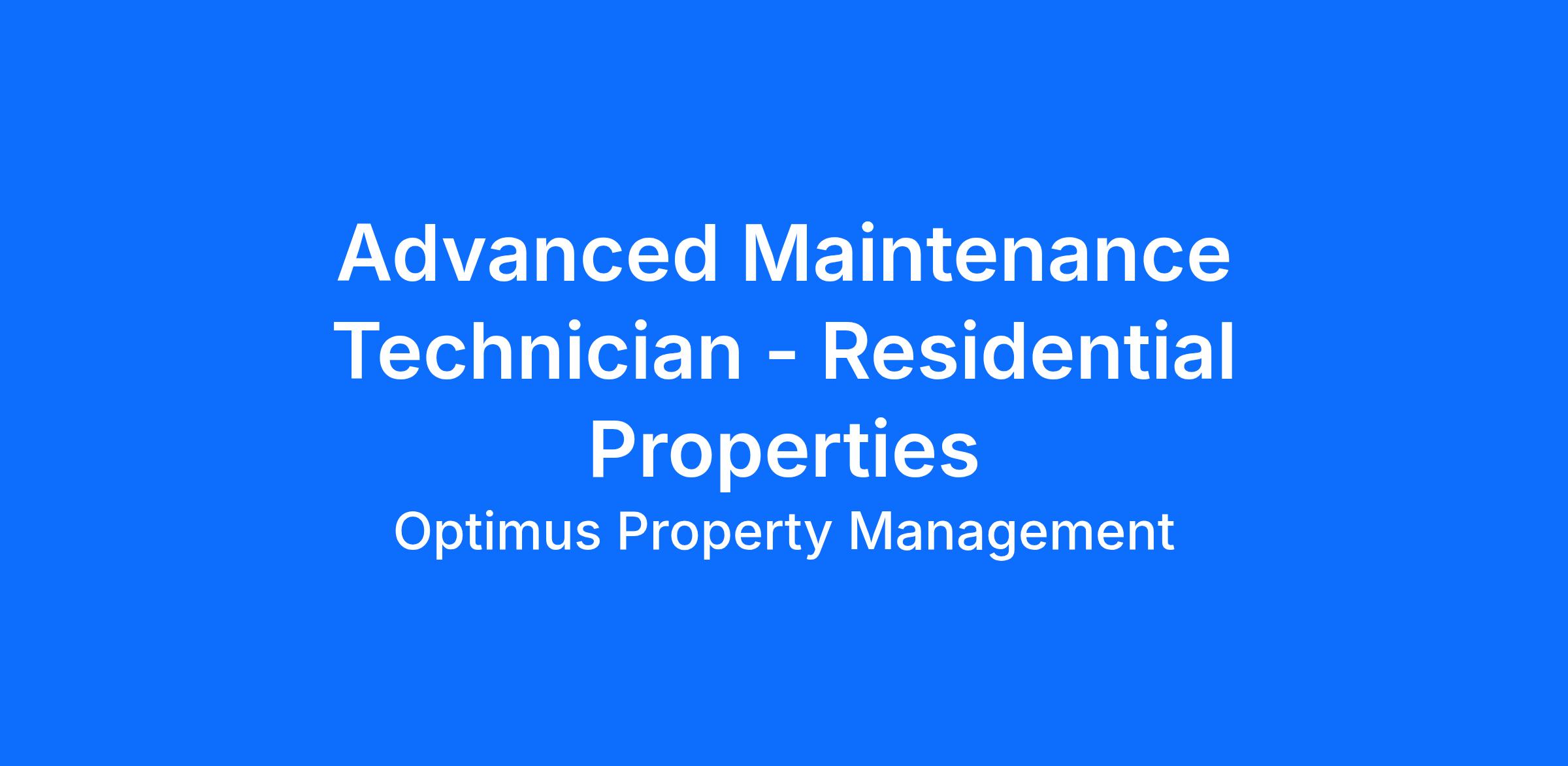Optimus Property Management, Inc. (www.opminc.com), based in Century City, CA, is a full-service property management company known for its high standards, professionalism, and growth opportunities is seeking a full-time Advanced Maintenance Technician to assist with minor renovations and tenant repairs at various properties in Los Angeles.