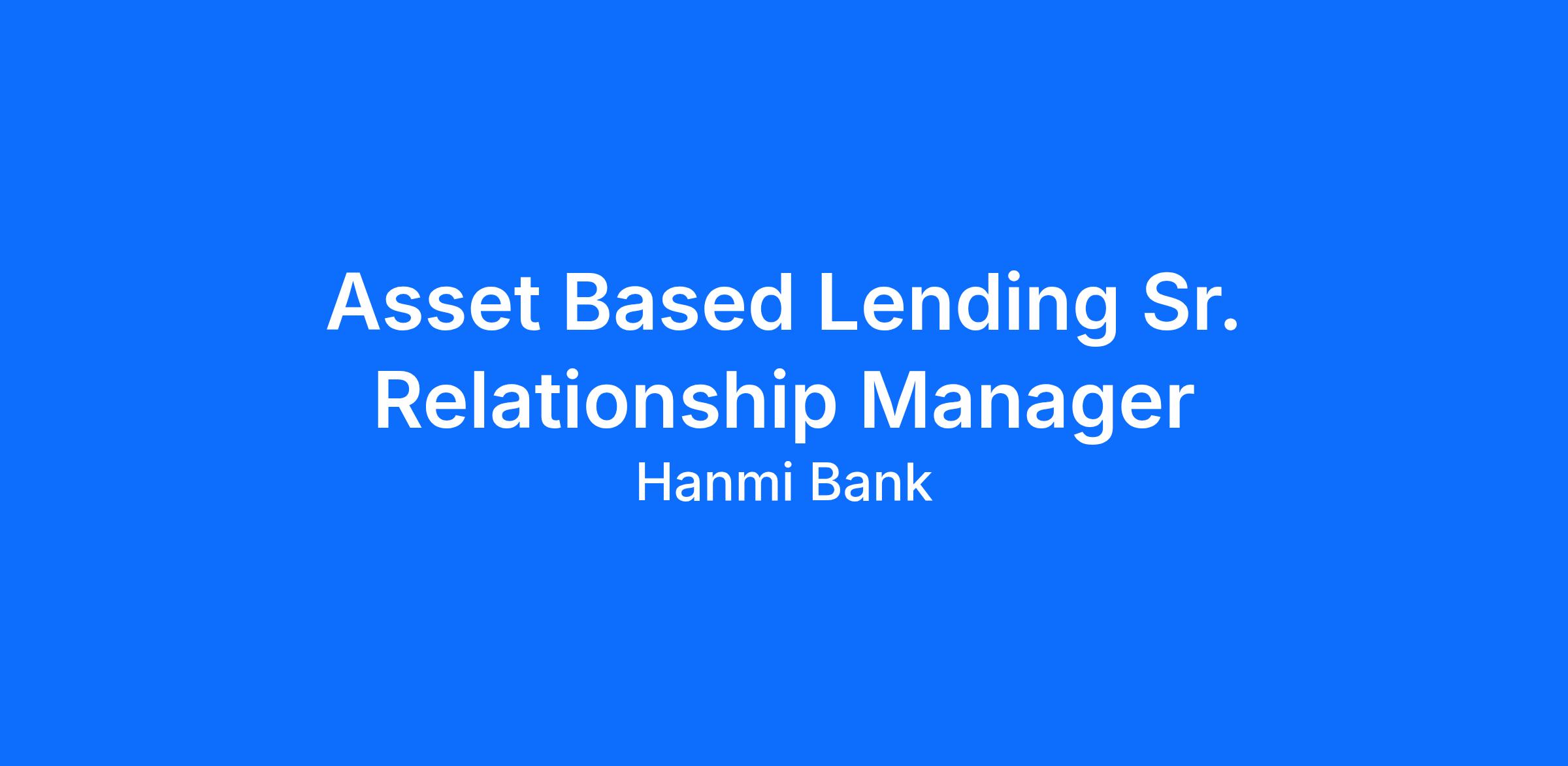 • 10+ years in Asset Based Lending sales or relationship management; Work related experience must consist of banking, financial services and/or client management.
