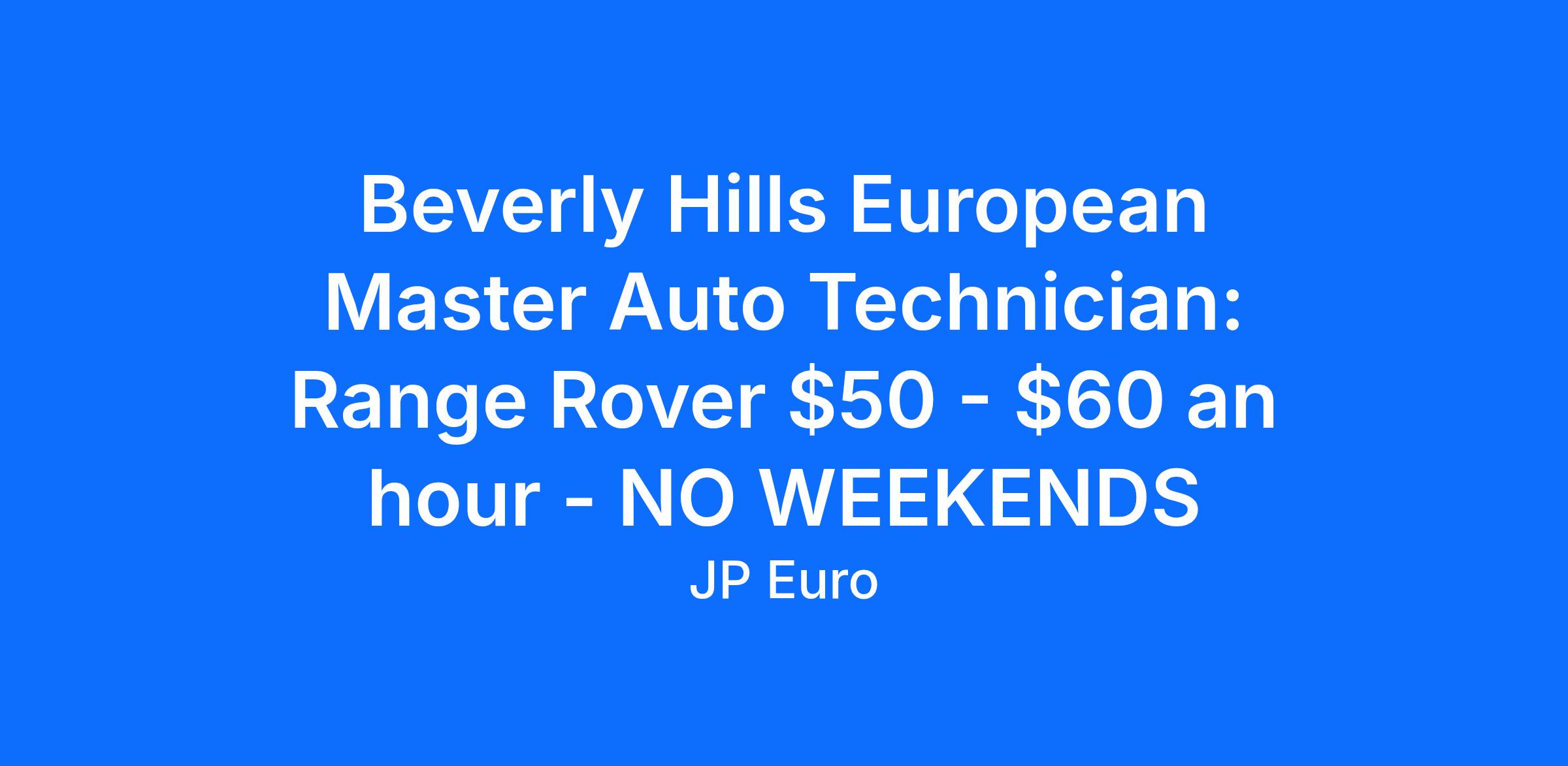 Beverly Hills European Master Auto Technician: Range Rover $50 - $60 an hour - NO WEEKENDS