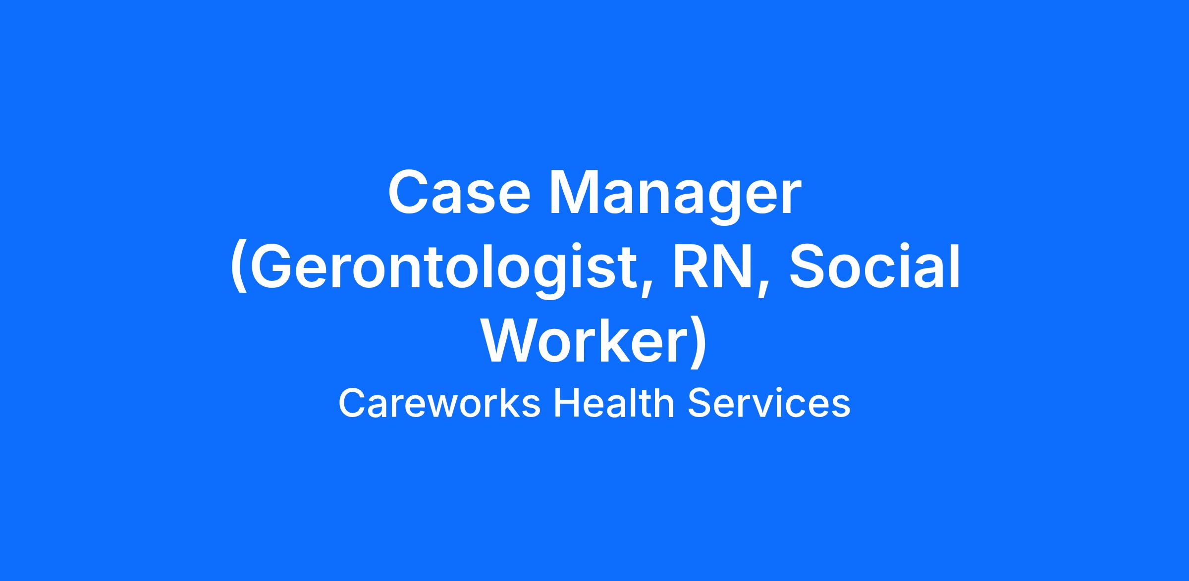 We’re looking for gerontologist/ geriatric social worker experienced care manager with at least 1 year experience with seniors and working withing the