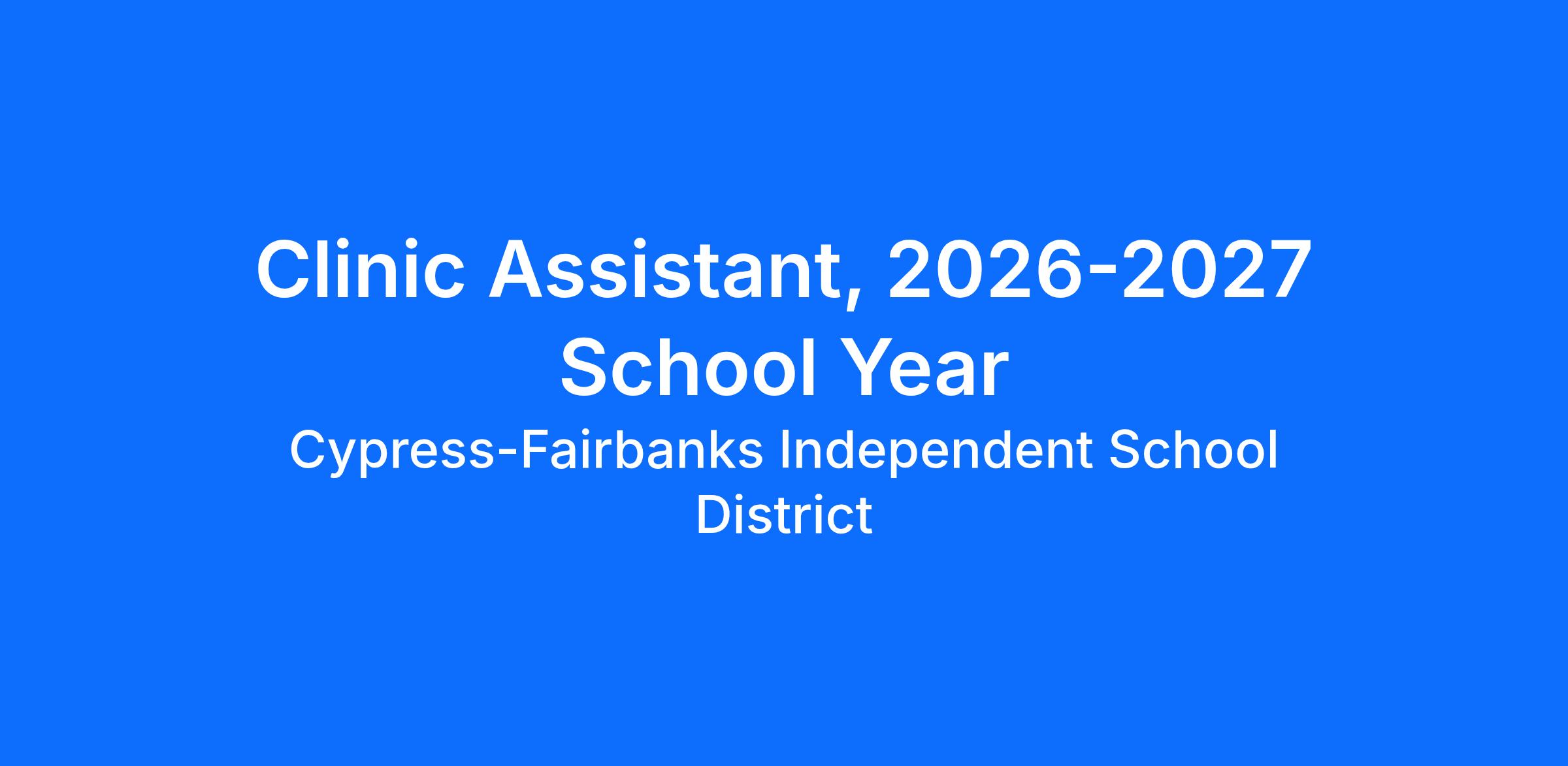 Applying for this posting places your name in a pool of applicants who wish to be considered for a Clinic Assistant position as they become available in the district
