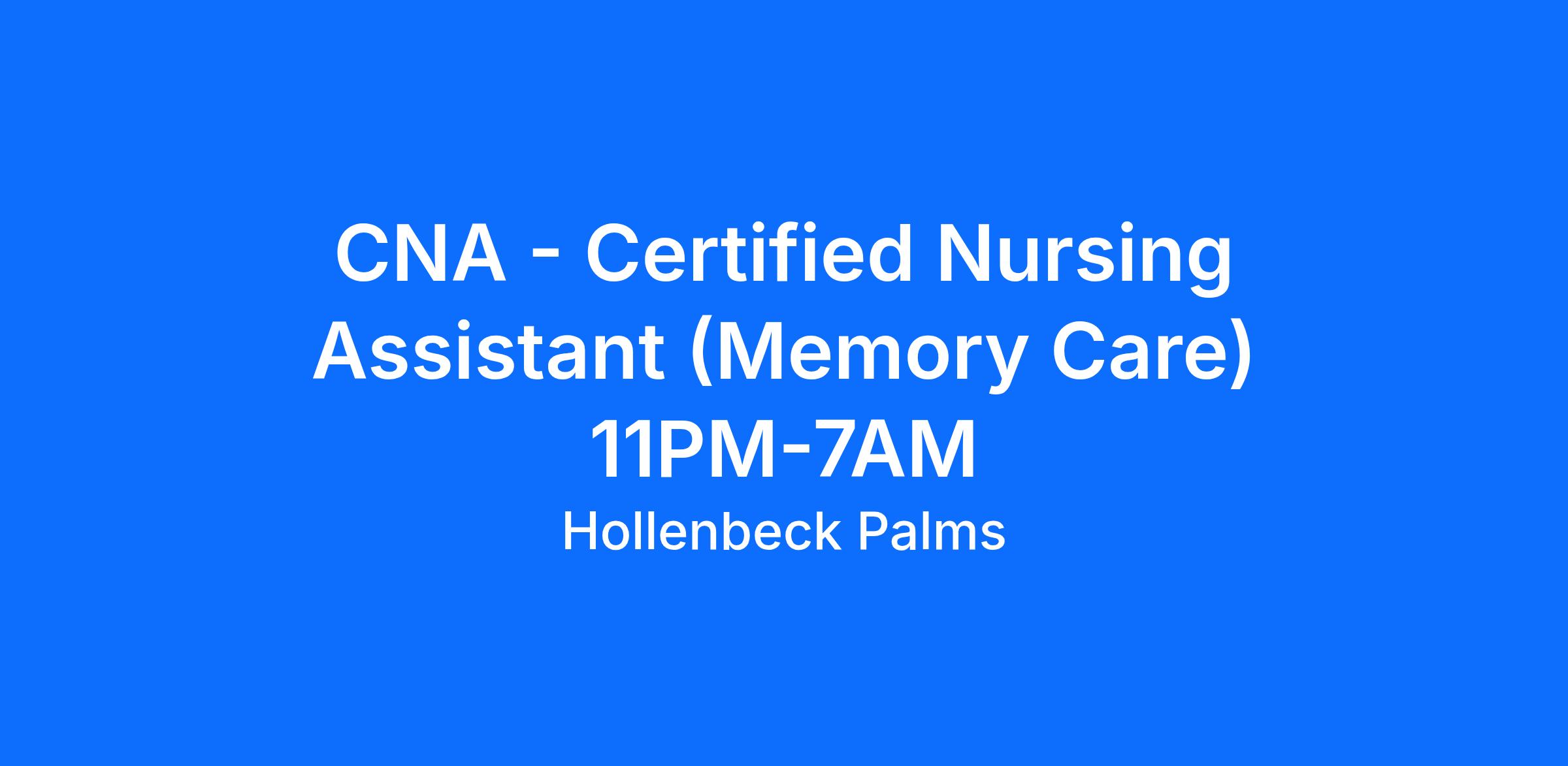 Looking for a job with great Benefits and Culture? Join us at Hollenbeck Palms! We are hiring a full time Certified Nursing Assistant / CNA to join our team in our Memory Care department!