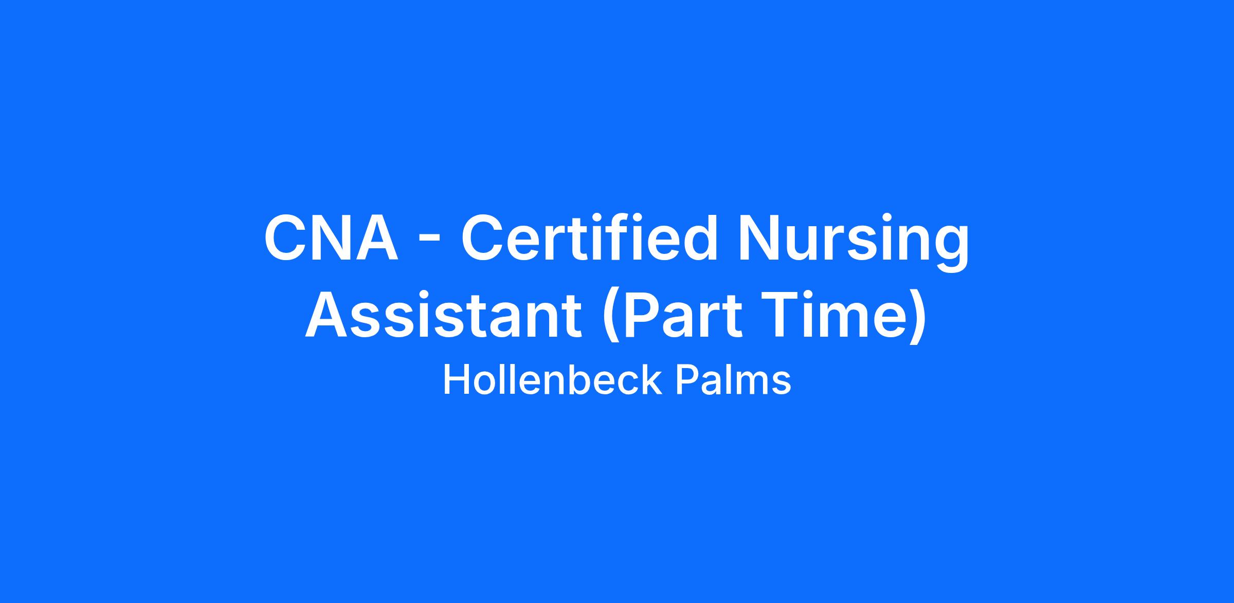 Looking for a job with great Benefits and Culture? Join us at Hollenbeck Palms! We are hiring two part time Certified Nursing Assistant / CNA to join our team in our Skilled Nursing department!