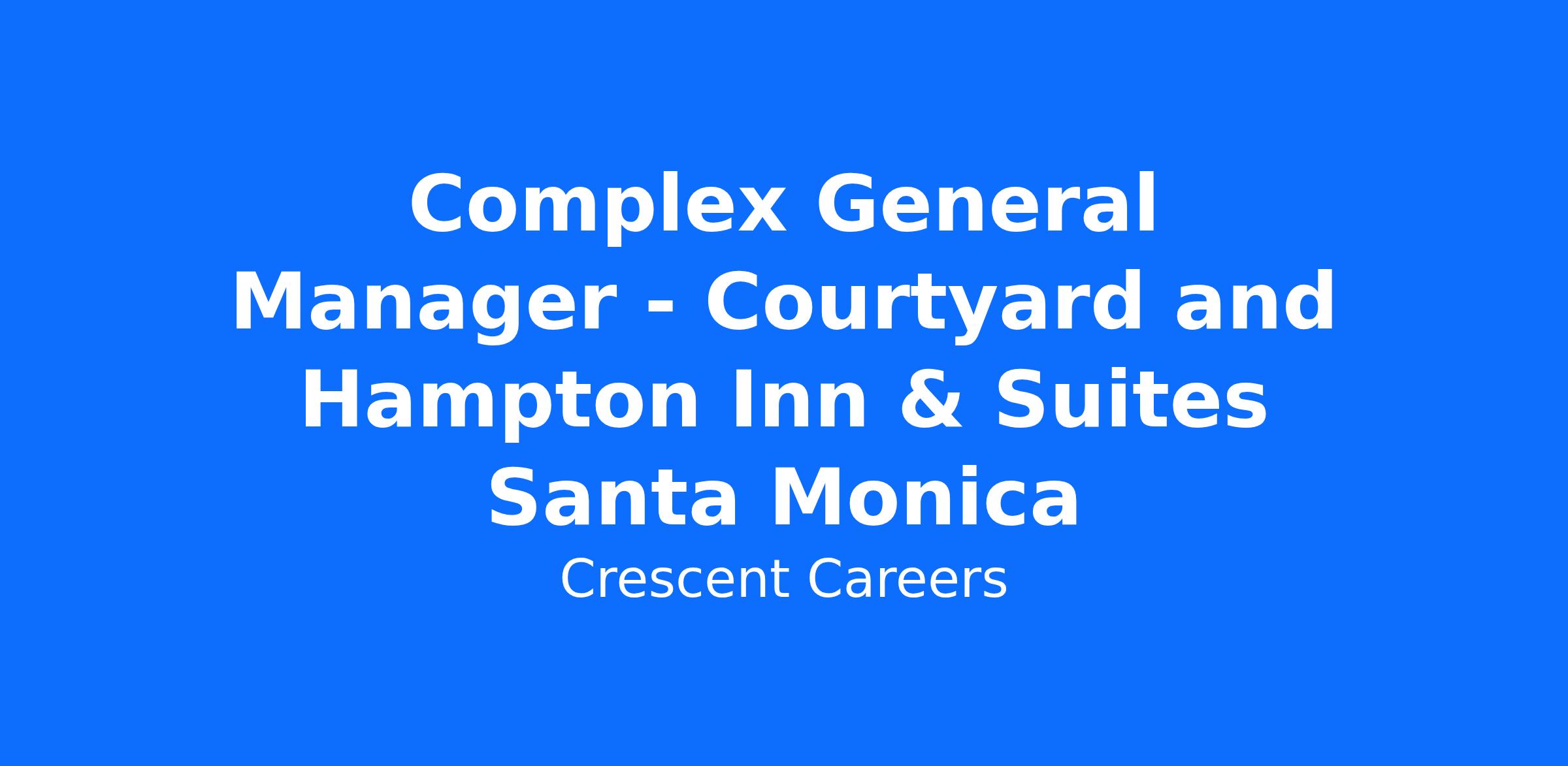 The Courtyard and Hampton Inn & Suites Santa Monica is seeking a passionate and driven Complex General Manager to lead our teams at this vibrant complex located just steps from the iconic Santa Monica Pier.
