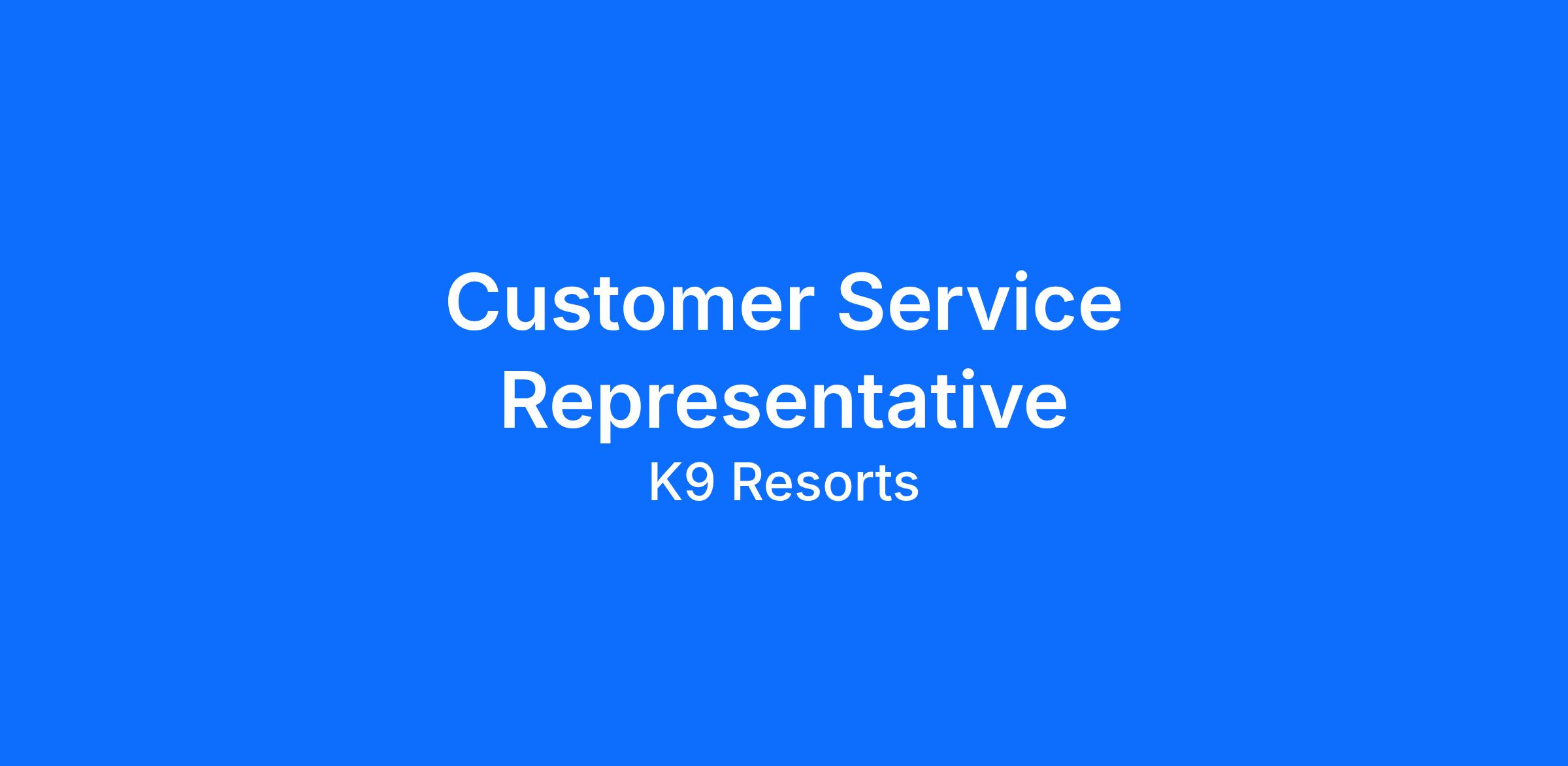 - Must complete K9 Resorts Certification Program for a Customer Service Representative