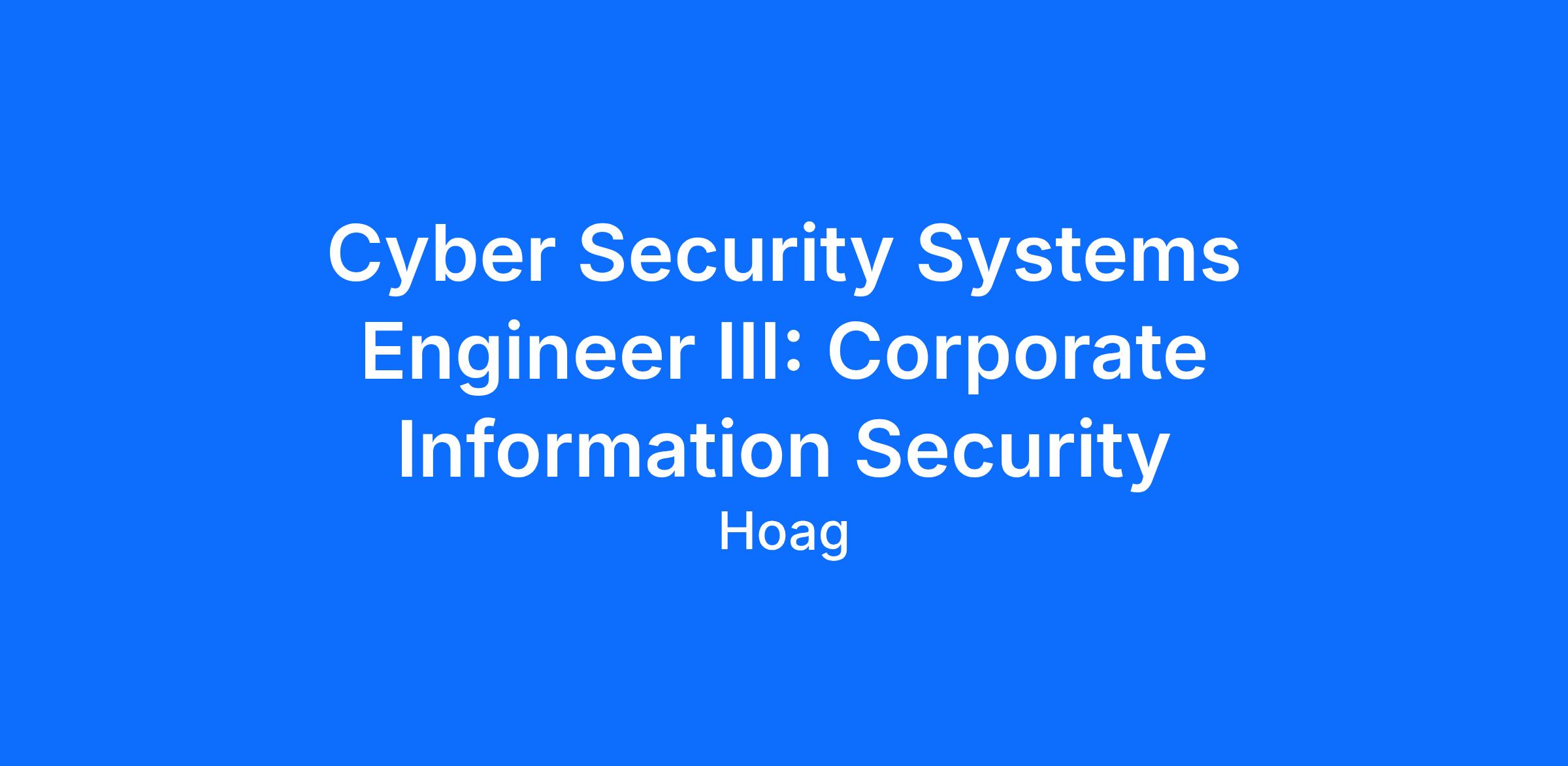 DescriptionThe Cyber Security Systems Engineer III leads the design, implementation, and optimization of advanced Cyber Security controls and architectures. Provides expert guidance and mentorship, ensuring alignment with the regulatory requirements.