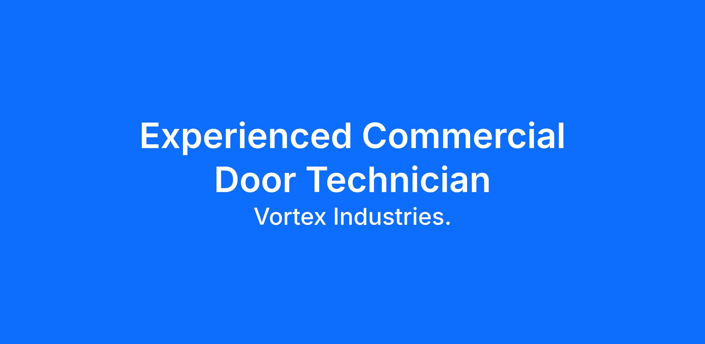 Vortex Doors, America’s highest quality and most customer-centric commercial and industrial door repair company, is seeking a motivated Experienced Commercial Door Technician to join our company. We are considering applicants with at least 3+ years of door industry experience!