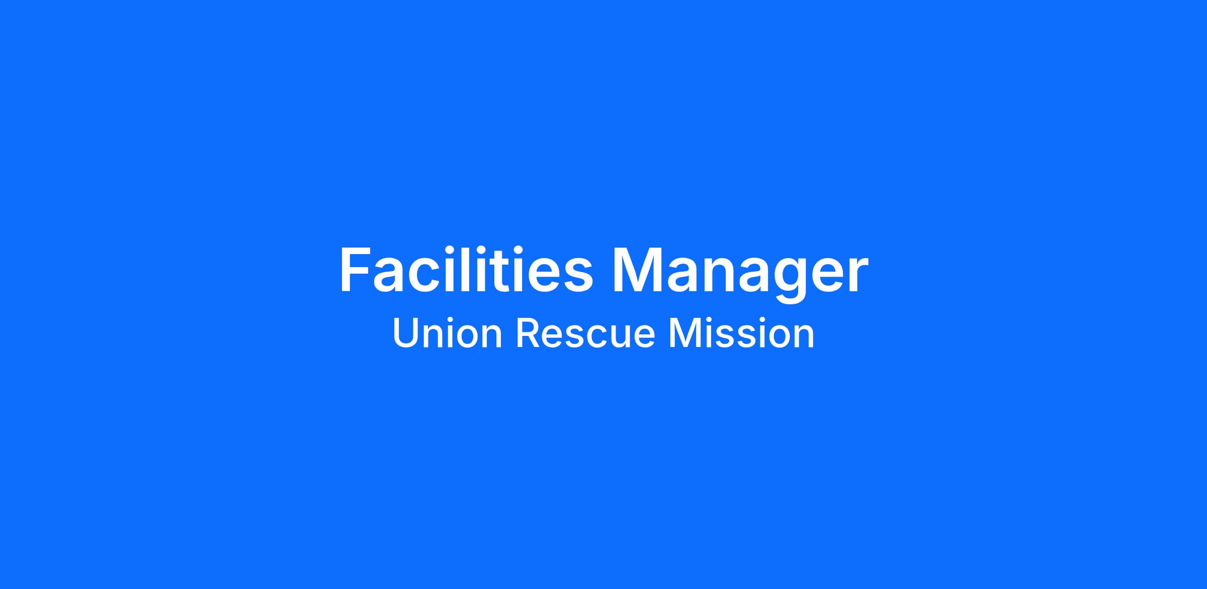 Under the supervision of the Director of Facilities/Operational Chaplain, the Facilities Manager is responsible for facility operations and special projects. This position requires a high degree of self-initiative, self-monitoring and must be able to maintain a good working relationship with staff, volunteers, program participants, donors and the community.