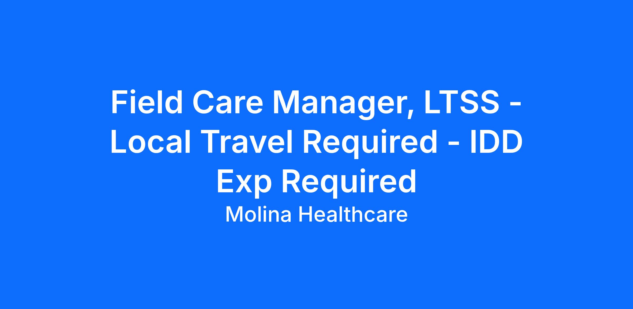 Opportunity for a bachelors or masters trained care manager to join Molina to work with our Medicaid members with some form of IDD diagnosis in the Dallas, TX service delivery area. Responsibilities include conducting face-to-face meetings with these members and their families in their homes, completing assessments needed for determining the types of services needed. Applicants must have experience with the IDD population to be considered. Having worked with this population within another managed care organization a plus. Mileage is reimbursed as part of our benefits package. Hours are Monday – Friday, 8 AM – 5 PM CST.