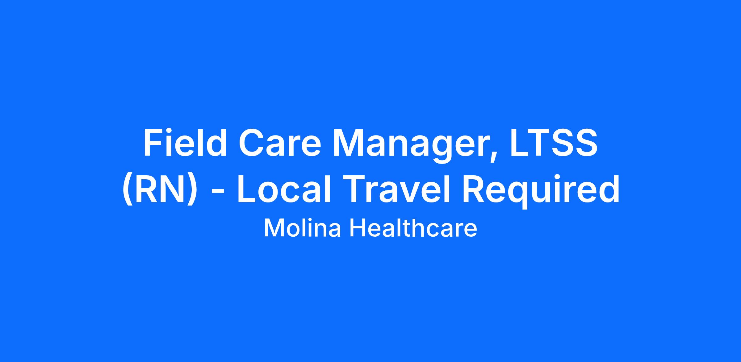 Opportunity for a Texas licensed RN to join Molina as a Field Care Manager to work with our Medicaid members in the communities of Hurst, Euless, and Bedford in the Fort Worth service delivery area. You will complete assessments needed for determining the types of services the waiver members are eligible to receive. Preference will be given to those candidates with previous experience working with the Medicaid population within a Managed Care Organization (MCO). Mileage is reimbursed as part of our benefits package. Hours are Monday – Friday, 8 AM – 5 PM CST.