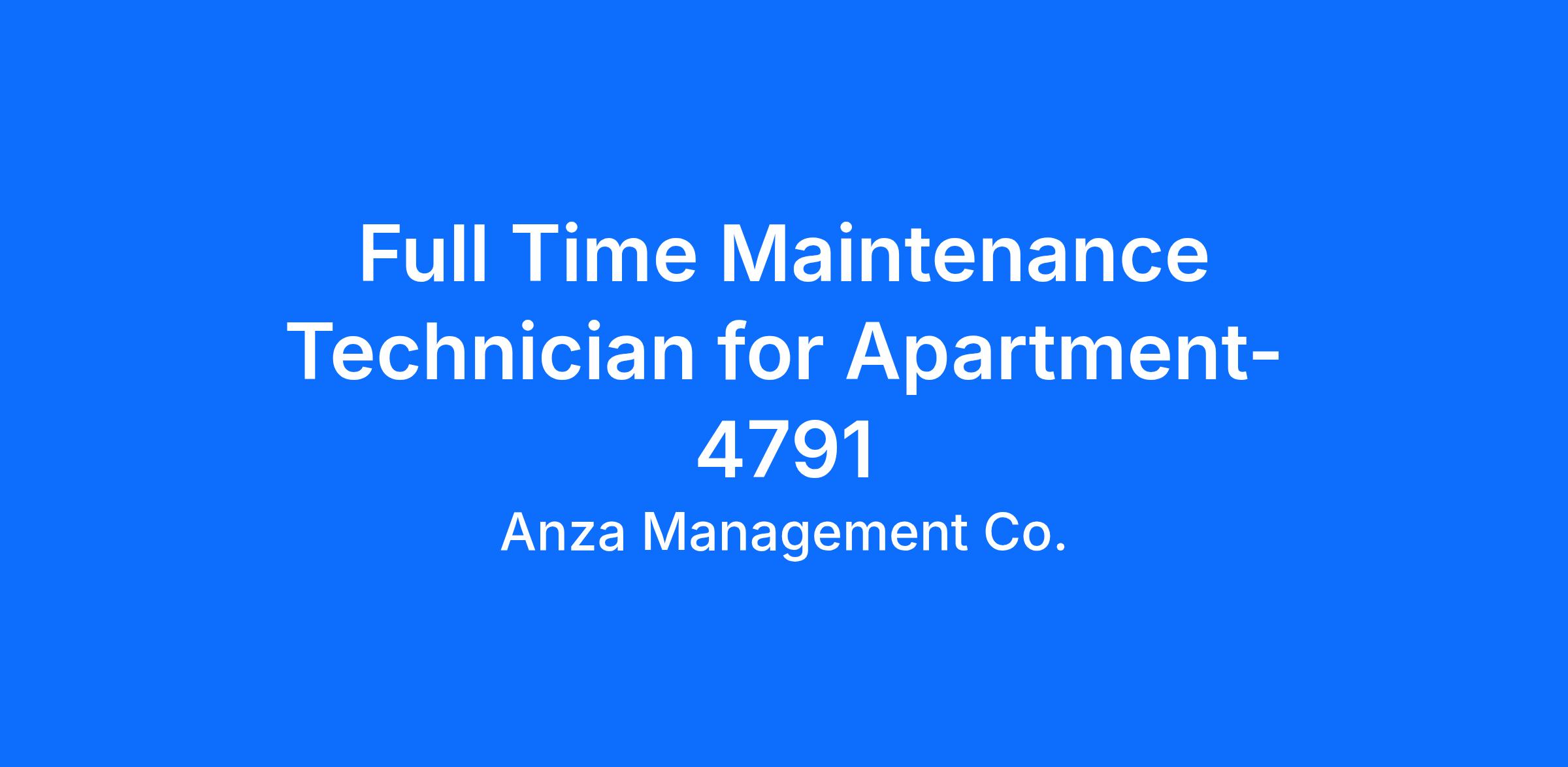 Anza Management is an equal opportunity employer. All applicants will be considered for employment without attention to race, color, age, religion, sex, sexual orientation, gender identity, national origin, veteran or disability status, or any other protected status in accordance with all applicable federal, state, and local laws