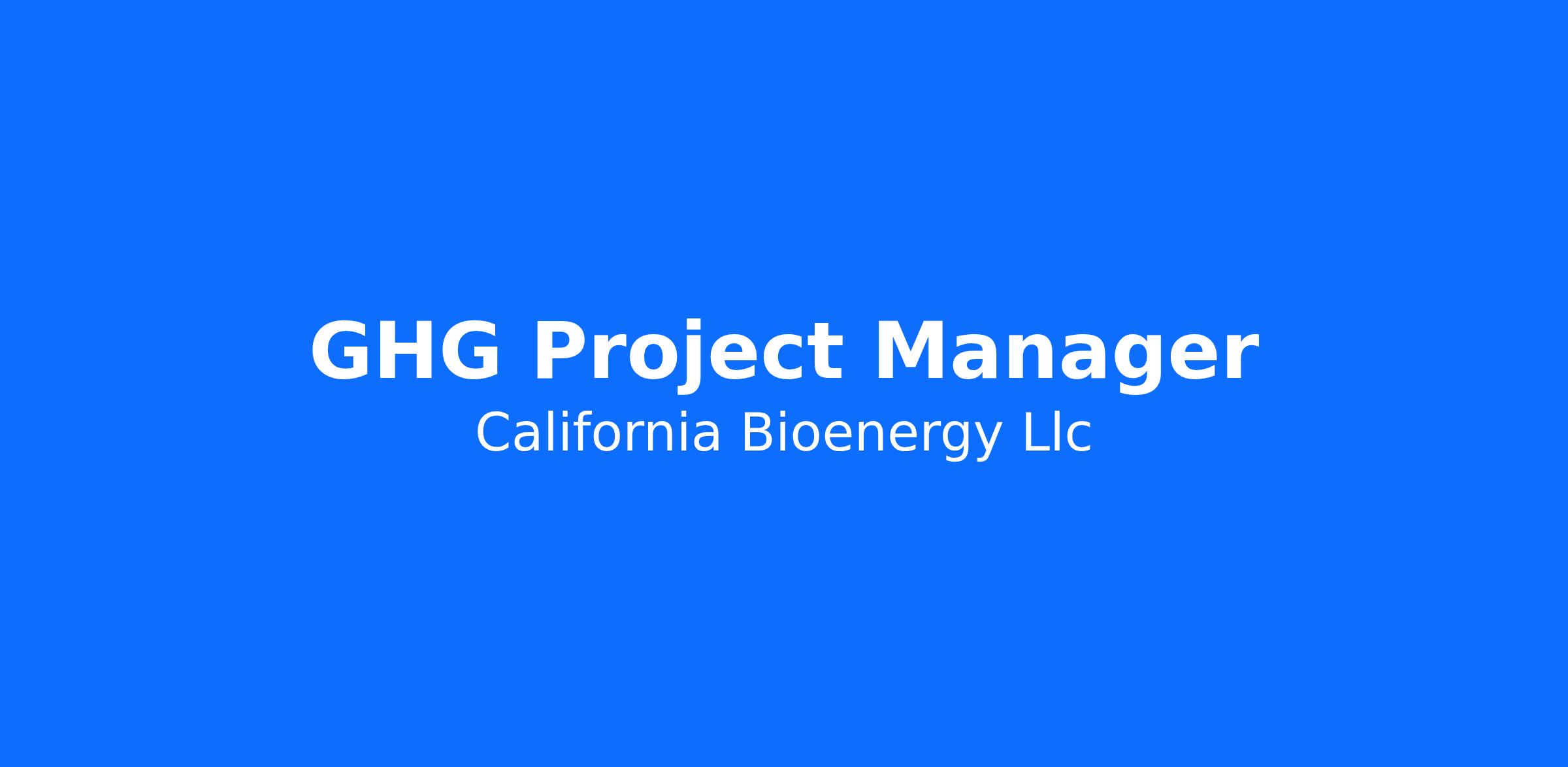 Other: CalBio is a growing company where roles and responsibilities may evolve over time as needs arise. The GHG Project Manager is expected to adapt when help is needed in areas which are not described in this job description. As knowledge and interests within the company develop, opportunities will be given to pursue these further to the extent possible.