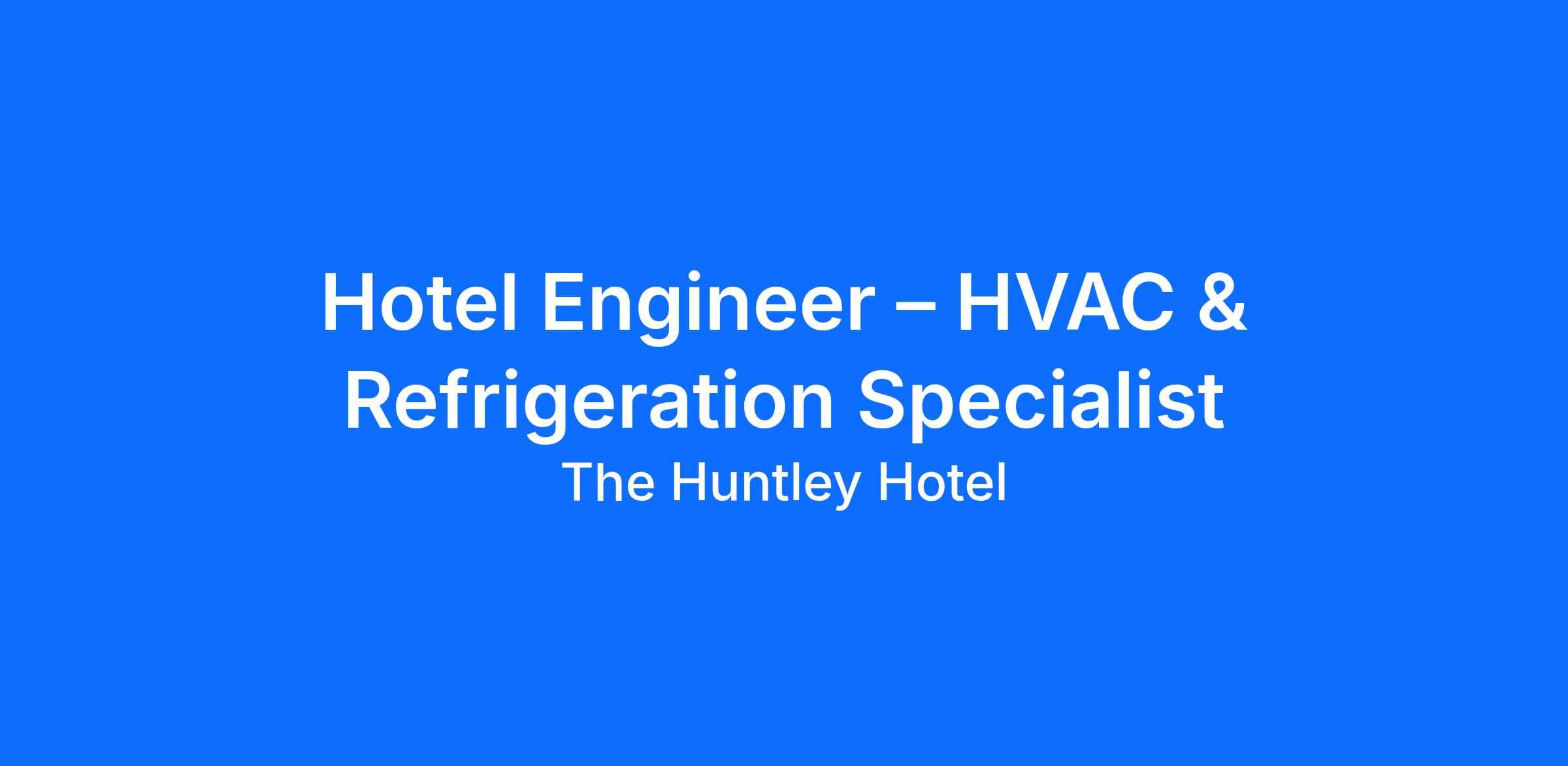 Position Title: Hotel Engineer – HVAC & Refrigeration Specialist