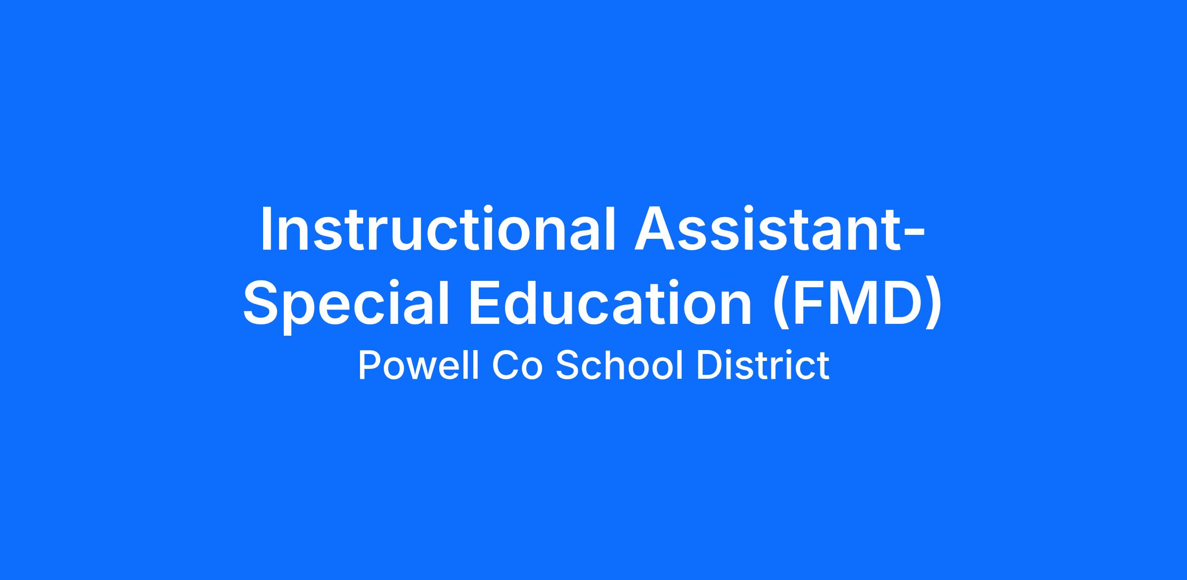 POSITION TITLE: Instructional Assistant—Special Education