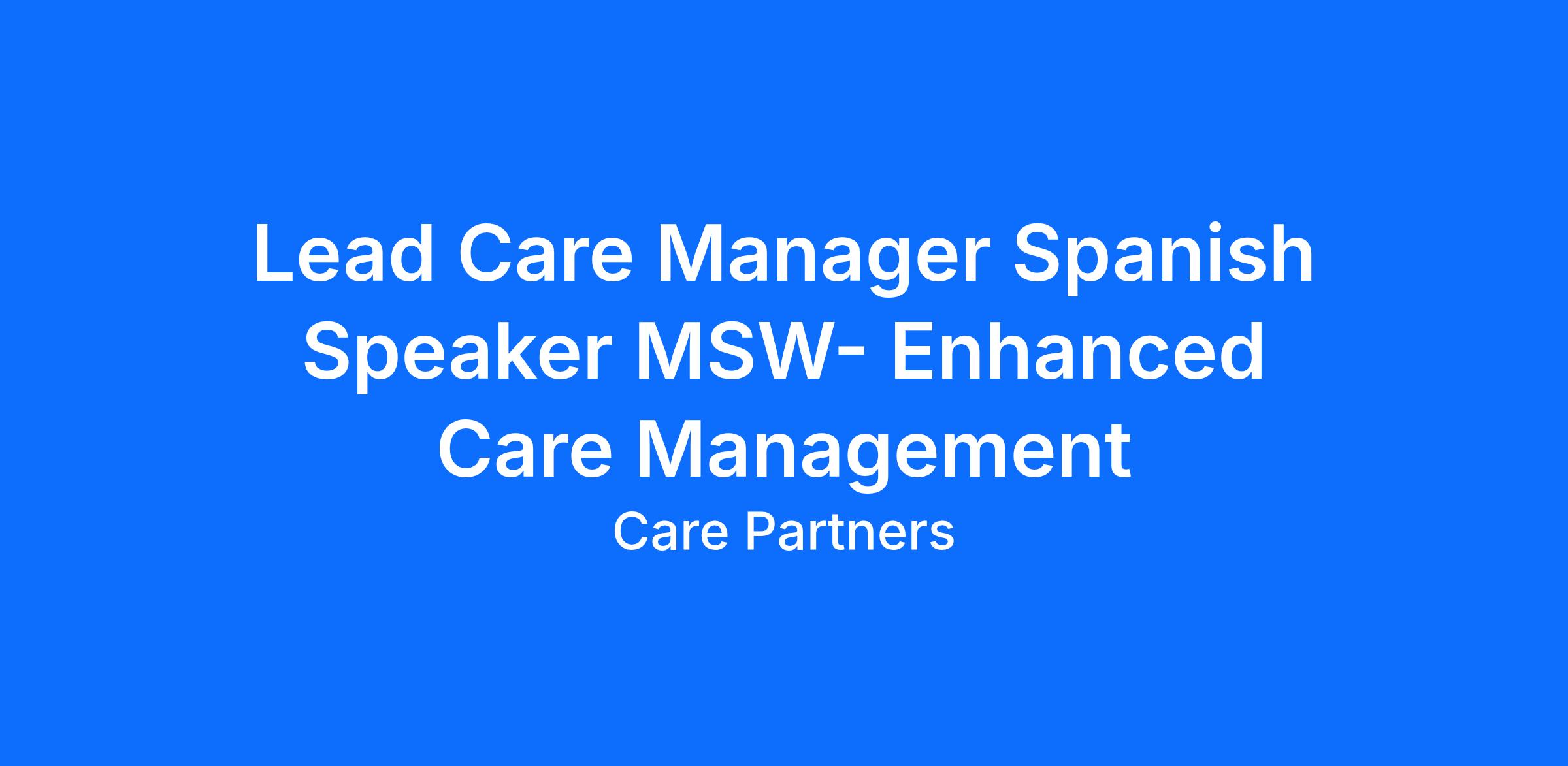 Lead Care Manager MSW- Benefits