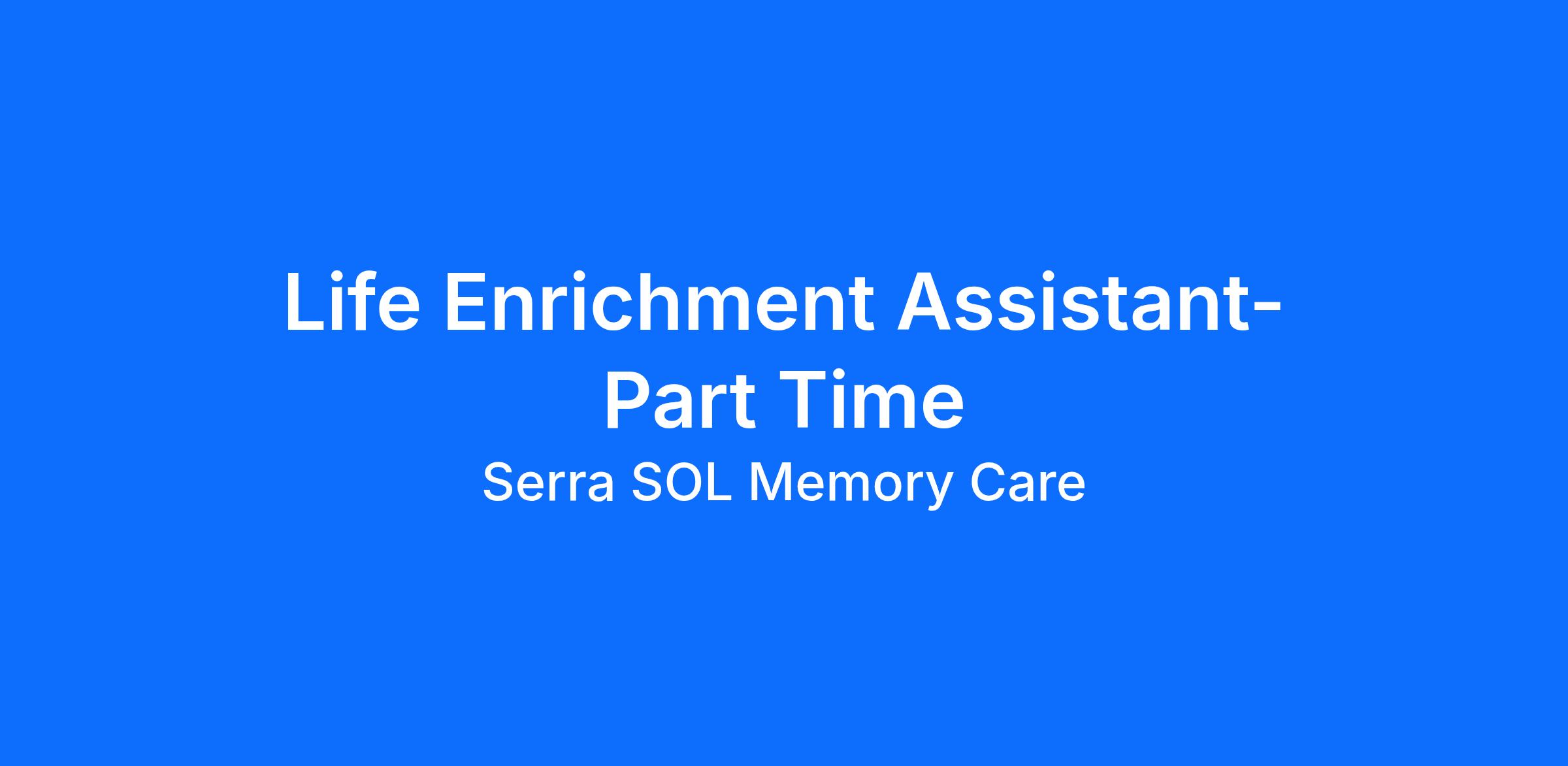 Life Enrichment Assistant-Part Time | Make Every Day Special