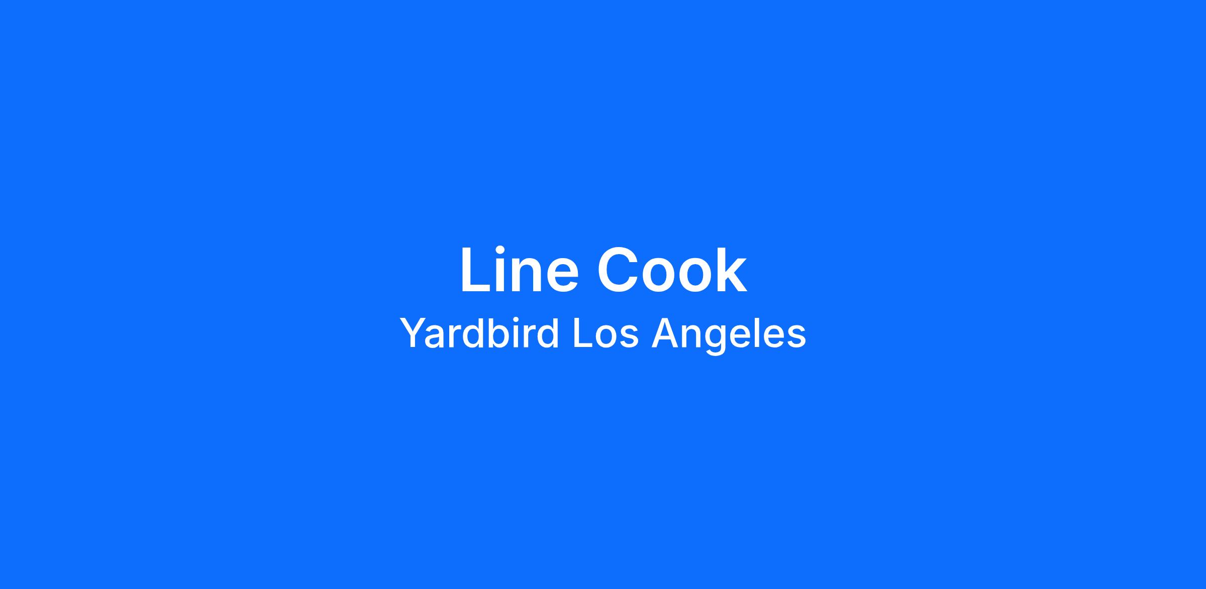 - Prepare and cook menu items according to Yardbird’s recipes, standards, and presentation guidelines.