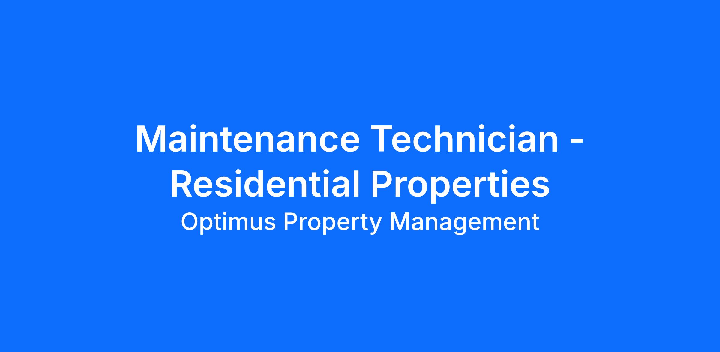 Optimus Property Management, Inc. (www.opminc.com), based in Century City, CA, is a full-service property management company known for its high standards, professionalism, and growth opportunities. It is seeking a full-time Maintenance Technician to assist with minor renovations and tenant repairs at various properties in Los Angeles.