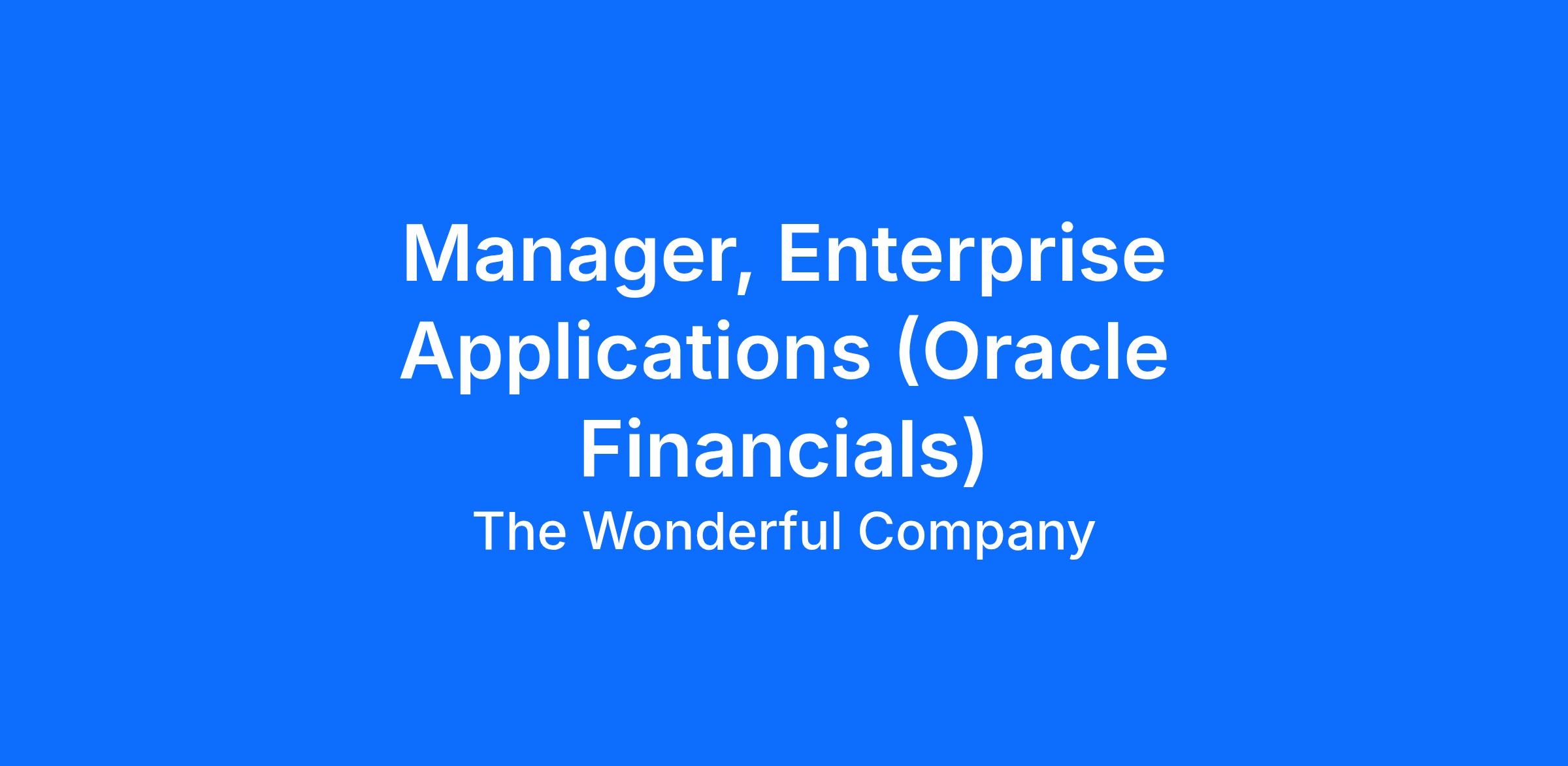 The Manager, Enterprise Applications leads the strategy, delivery, and optimization of enterprise financial systems, with deep expertise in Oracle ERP Fusion and Oracle E-Business Suite (EBS). This role partners closely with Finance, Accounting, FP&A, and Compliance to deliver scalable, secure, and high-performing ERP solutions that support finance transformation and operational excellence.