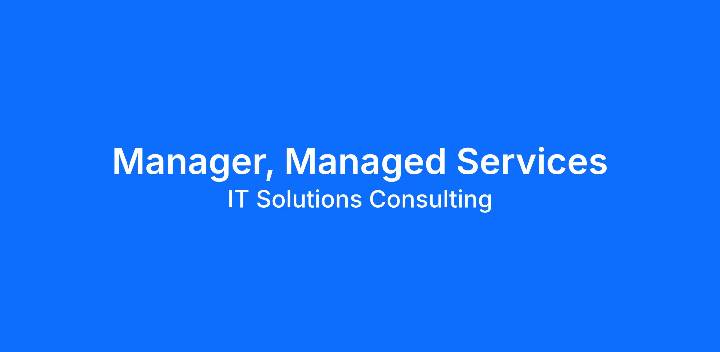 The Manager, Managed Services has ownership of the customer service relationship between IT Solutions Managed Services and a portfolio of our clients in partnership with the client success Strategic Advisor. The Manager, Managed Services is responsible for being the voice of both the client to IT Solutions Managed Services Delivery and for Delivery to the client as it relates to our managed services. This role will direct first-line people leaders and will carry mentoring and management responsibilities. This role will be accountable for the overall performance of the service delivery team(s) within their assigned region, and for ensuring adherence to company processes and policies and driving attainment of company goals.