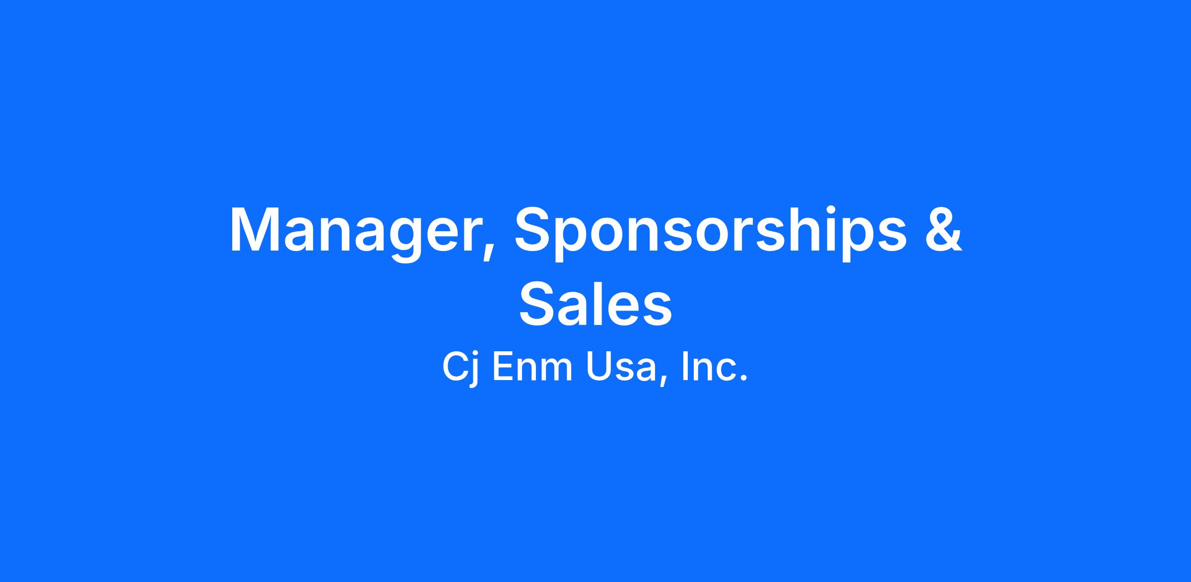 Position Title: Manager, Sponsorships & Sales