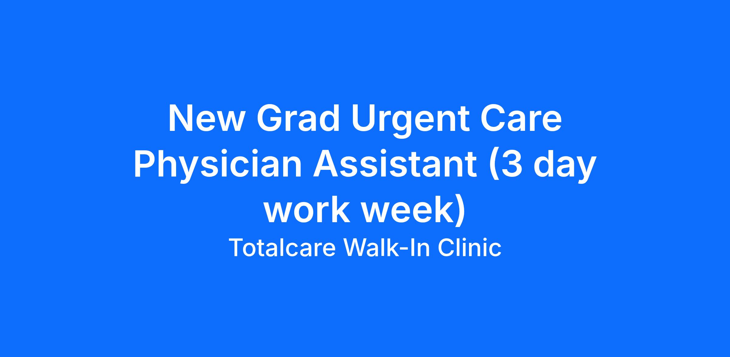 TotalCare Walk-In Clinic is looking for a full-time Physician Assistant for our Irvine clinic. We are a multi-specialty medical group that offers services in internal medicine, family medicine, cardiology, urgent care, and medical aesthetics. We have a highly collaborative team of 25 providers spread across 8 locations.