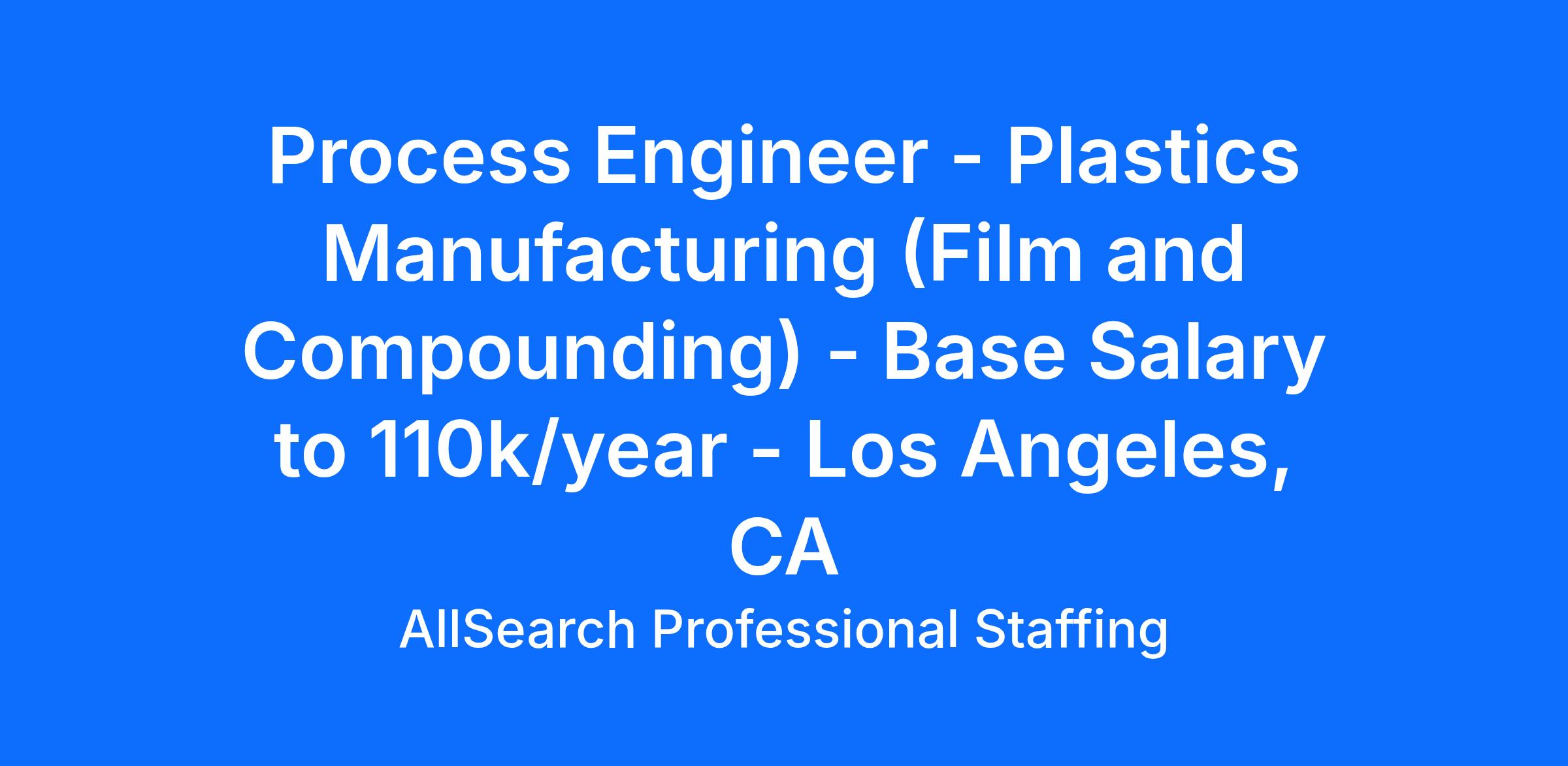 Process Engineer - Plastics Manufacturing (Film and Compounding) - Base Salary to 110k/year - Los Angeles, CA
