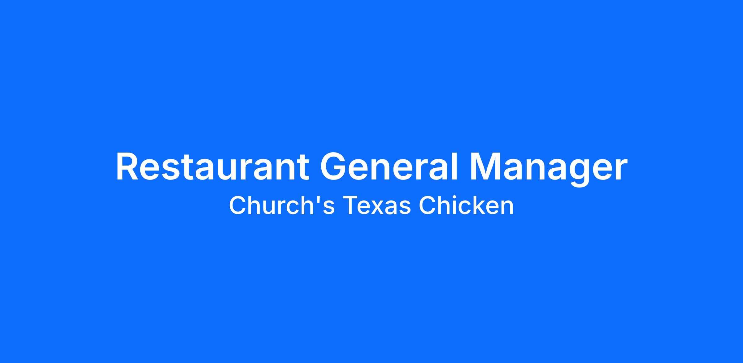 Reporting to the Market Leader, the Restaurant General Manager (RGM) is responsible for protecting and delivering the Church’s Chicken Brand, to grow sales while maximizing the efficiency and profitability of the restaurant by exemplifying brand standards.