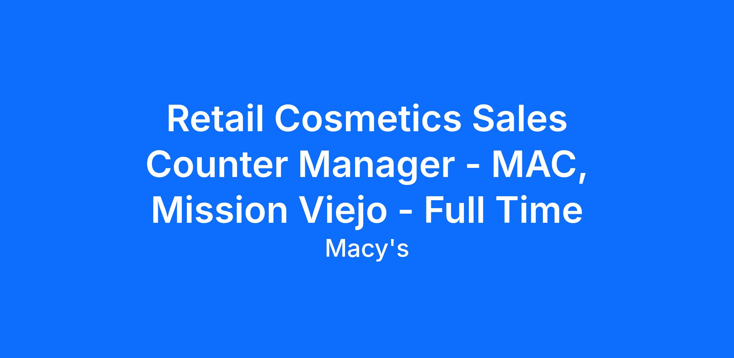 This job description is not all-inclusive and may not apply to colleagues covered by a collective bargaining agreement. Macy's Inc. reserves the right to amend this job description at any time. Macy's Inc. is an Equal Opportunity Employer, committed to an inclusive work environment.