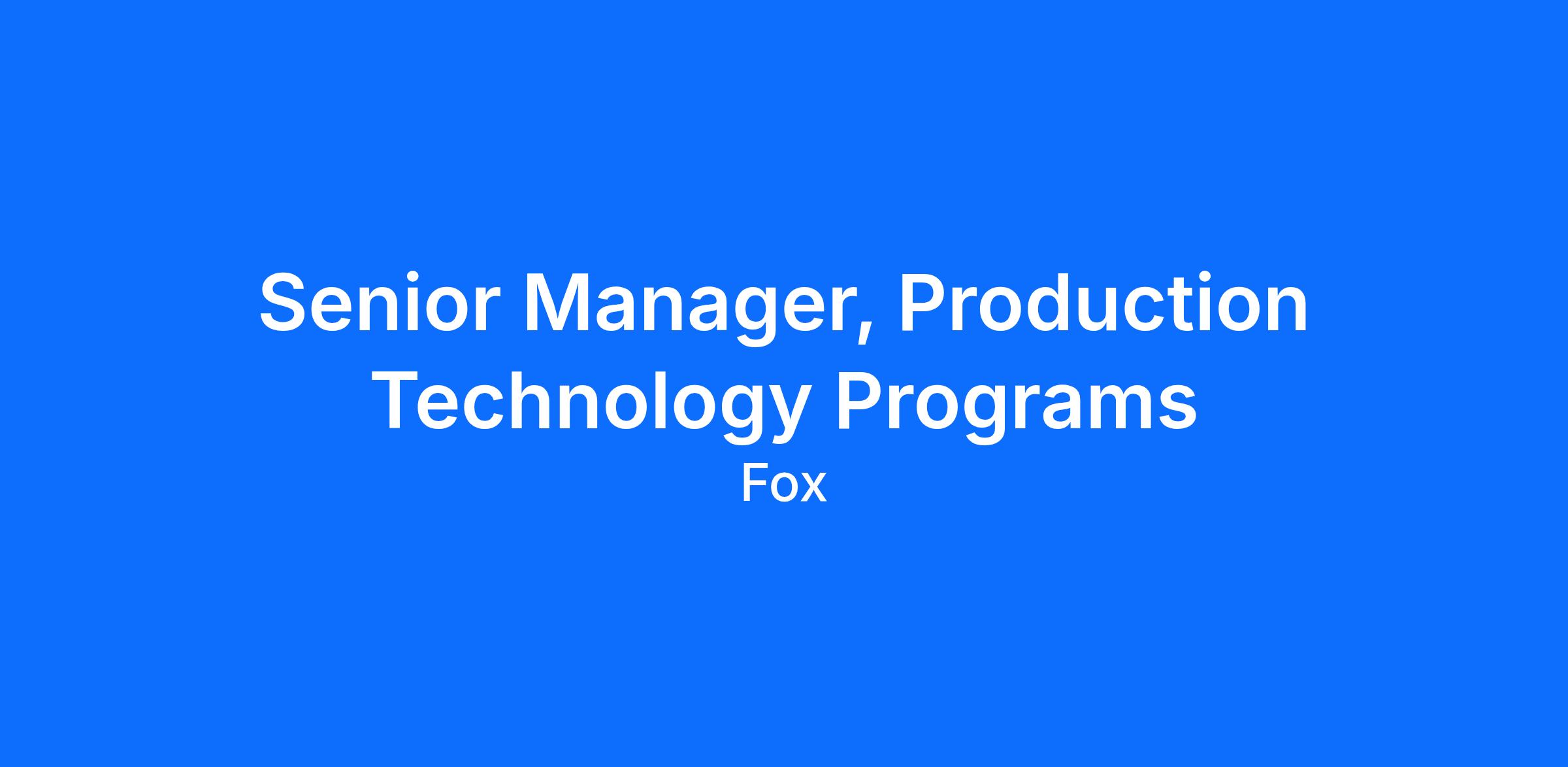FOX Entertainment With a legacy spanning more than 35 years, FOX Entertainment is one of the world’s most recognizable media brands and a prolific content producer across its iconic broadcast network and both owned and third-party streaming platforms. Known for its independent, innovative spirit and provocative, groundbreaking storytelling, the company was reinvented in 2019 with the formation of FOX Entertainment. While maintaining its leadership in broadcast television (9-1-1: Lone Star, The Simpsons, The Cleaning Lady, Hell’s Kitchen, LEGO Masters), the company is actively building a portfolio of businesses and library of owned original content. To date, FOX Entertainment’s long-term growth strategy has included the acquisitions of award-winning animation studio Bento Box Entertainment (Bob’s Burgers, The Great North, Krapopolis, Grimsburg), entertainment platform TMZ, and global production studio MarVista Entertainment (The Way Home, Rescuing Christmas), as well as the formation of the culinary and lifestyle content venture Studio Ramsay Global (Next Level Chef, Gordon Ramsay’s Food Stars) in partnership with Gordon Ramsay. The company also established its in-house unscripted studio FOX Alternative Entertainment (The Masked Singer, Snake Oil, I Can See Your Voice, Name That Tune), FOX Entertainment Studios (Animal Control) to develop scripted content, and worldwide content sales unit FOX Entertainment Global.FOX Entertainment is hiring a Senior Manager, Production Technology Programs to shape and advance production-facing technology strategy across Entertainment.
