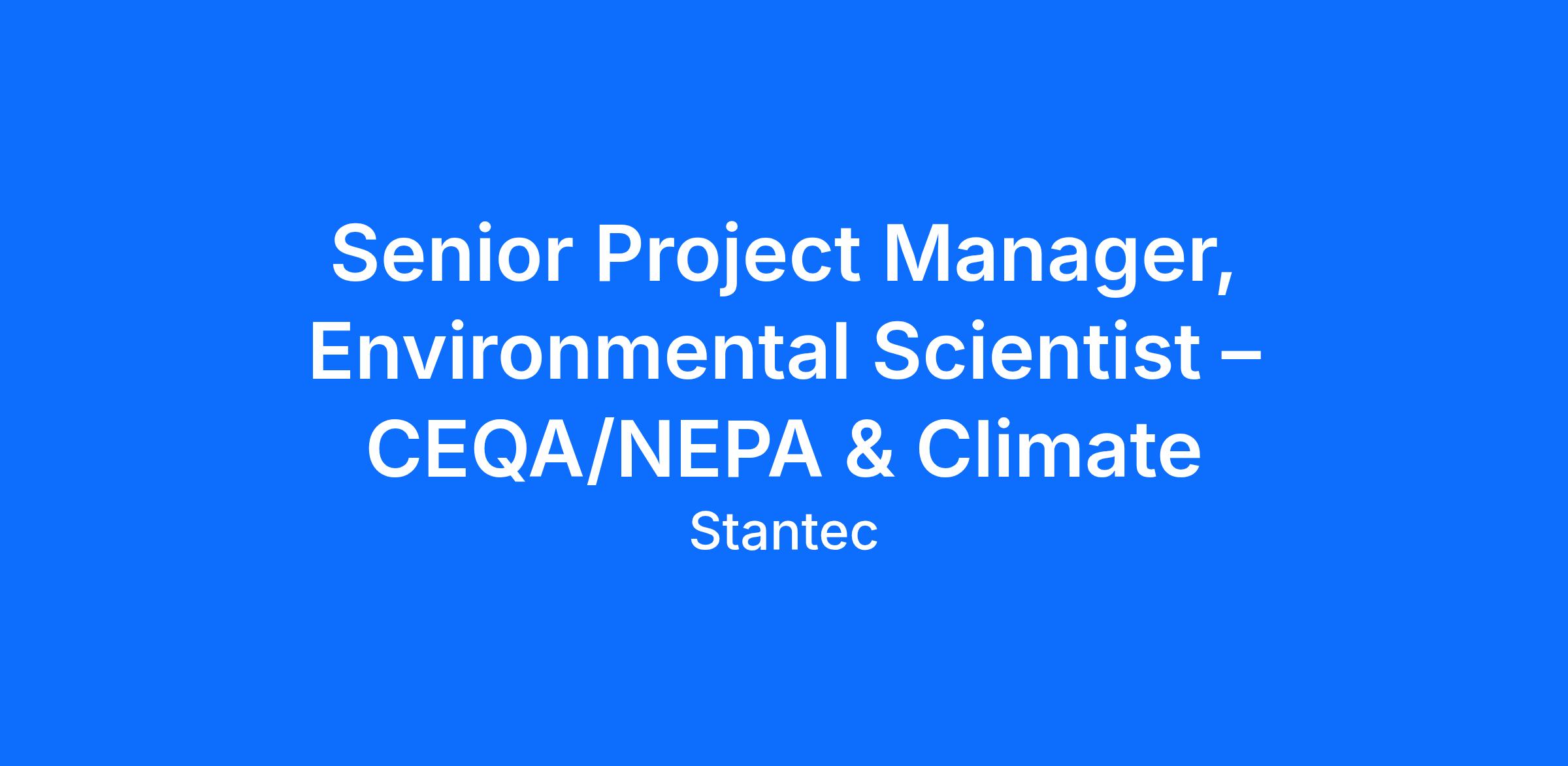 Stantec is seeking a Senior Environmental Project Manager to support environmental planning, climate change, and sustainability services in the US West. This role combines client relationship management, project delivery, and strategic growth while providing senior-level oversight on greenhouse gas (GHG) and climate-related analyses.