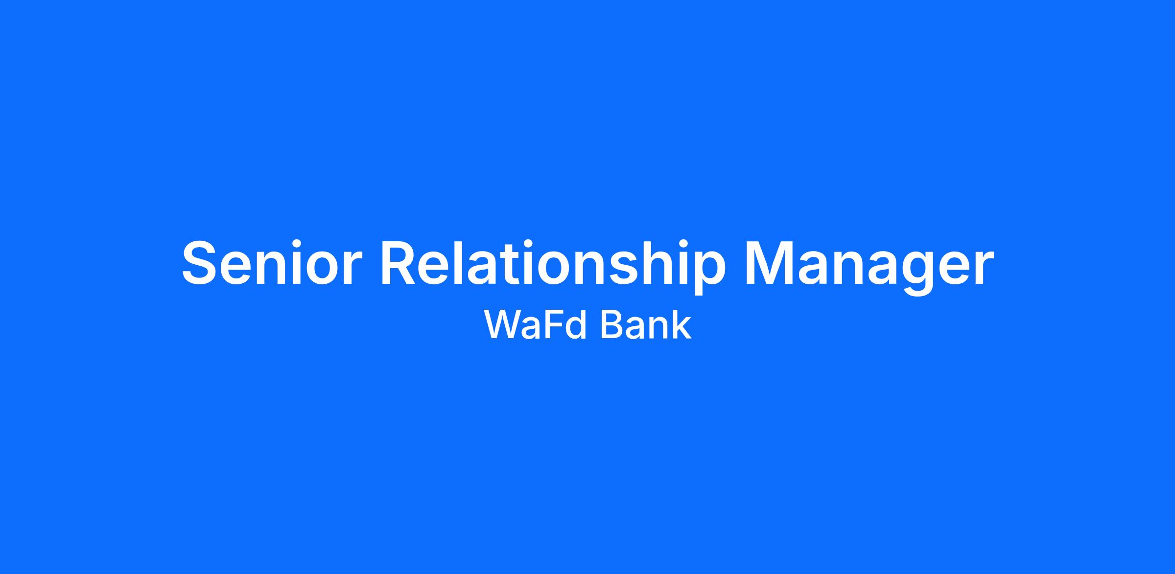 The Senior Relationship Manager is responsible for developing a calling plan to maintain and grow existing relationships and is responsible for developing new relationships that meet WaFd Bank's client selectivity and risk appetite. The Senior Relationship Manager has had proven success in independently winning new relationships (credit and non-credit) and negotiating terms with minimal assistance. Senior Relationship Managers are expected to partner with the appropriate commercial banking colleagues (Loan Coordinators, Credit Analysts) to develop and maintain credit relationships with the guidance of Credit Administration and the DM or Director. Senior Relationship Managers work closely with Treasury Management Officers to grow and service the non-credit needs of commercial clients. This position develops and manages commercial loan accounts which meet established lending and client selectivity requirements and provide maximum profitability to the Bank with a minimum of risk.