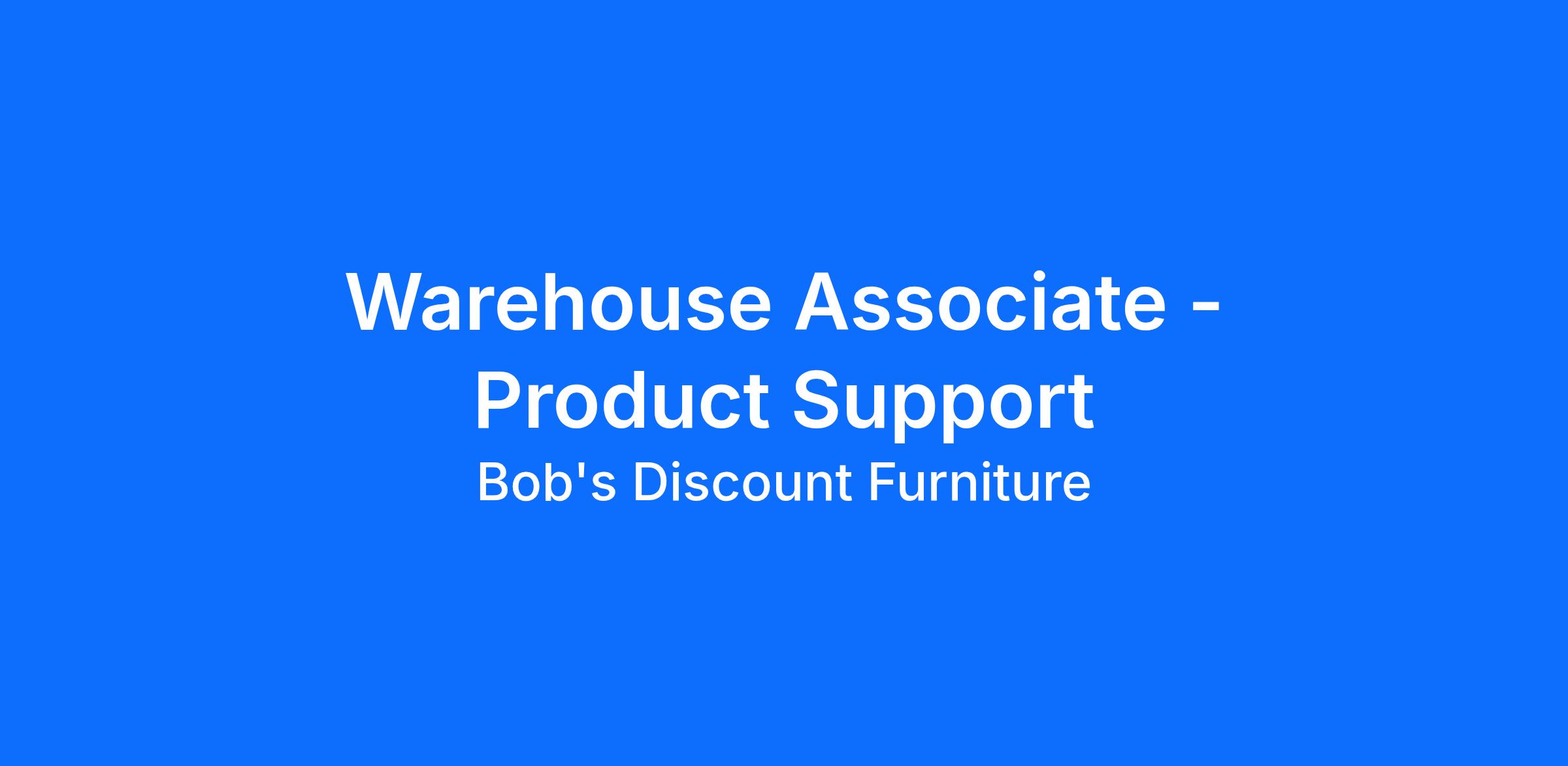 Our Retail Warehouse- Product Support Associates are essential team members at Bob’s Discount Furniture, playing a critical role in the back-end operations that make our stores shine. Whether part-time or full-time, this role ensures our showrooms are staged to perfection, our merchandise is handled with care, and our customers receive exceptional service from behind the scenes. This position works closely with store leadership and visual merchandising to maintain safety, cleanliness, inventory integrity, and showroom readiness.